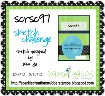 Welcome to a New Challenge over at Sparkle Creations. This time we have a fabulous sketch for you to try. So grab your favorite Sparkle Creation Rubber Stamp and join us in this Challenge. See The Sparkle Creations Rubberstamp Blog for all the prize information. And go pop on over to see my fellow Design Team Mates Blogs and see how they used this sketch.